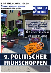 Am 06. Juli luden die Βürger für Garching zu ihrem 9. Politischen Frühschoppen ein, diesmal im Cafe Restaurant Flamm`s. Die Veranstaltung stand unter dem Motto:
