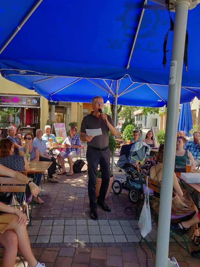Bezüglich der Themenblöcke: erneuerbare Energien und Energieverbrauch, alternative und nachhaltige Verkehrsangebote, Blumenwiesen, Grünstreifen, Erhaltung der Artenvielfalt und Naturschutz, Abfallvermeidung insbesondere Plastikmüll entwickelte sich bald eine lebhafte und ebenso informative Diskussion, an der sich auch immer wieder mit guten und interessanten Beiträgen die zahlreichen Zuhörer beteiligten.