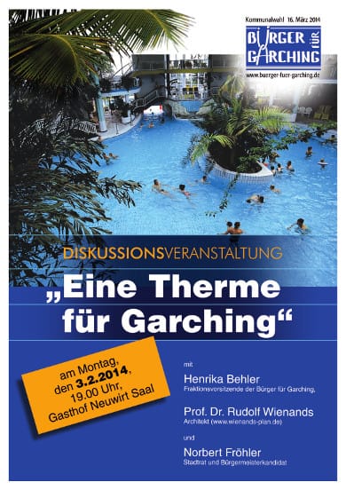 Es liegt somit am nächsten Bürgermeister mit Investoren in Kontakt zu treten, um die Möglichkeiten eines Schwimmbads für Garching auszuloten.