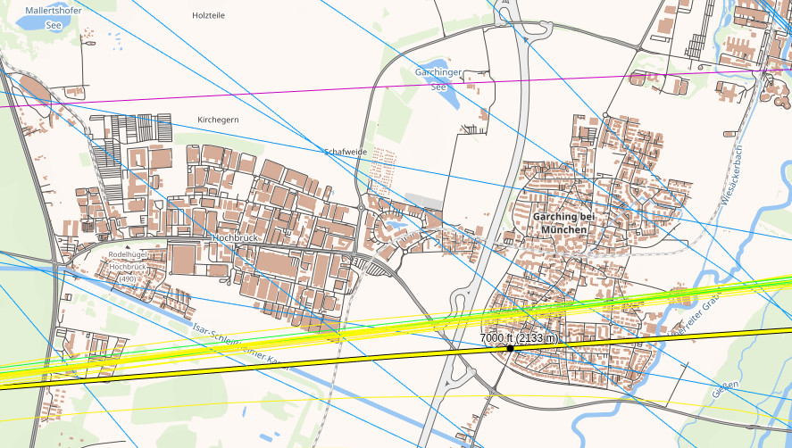 Über 3 Stunden informierten wir uns über die Einflugschneisen der beiden Landebahnen Süd und Nord, entscheidene Höhenunterschiede der auf beiden Bahnen einfliegenden Maschinen und den Wegpunkt Garching, der die Anflugroute bei Betriebsrichtung Ost genau über Garching hinweg führt.